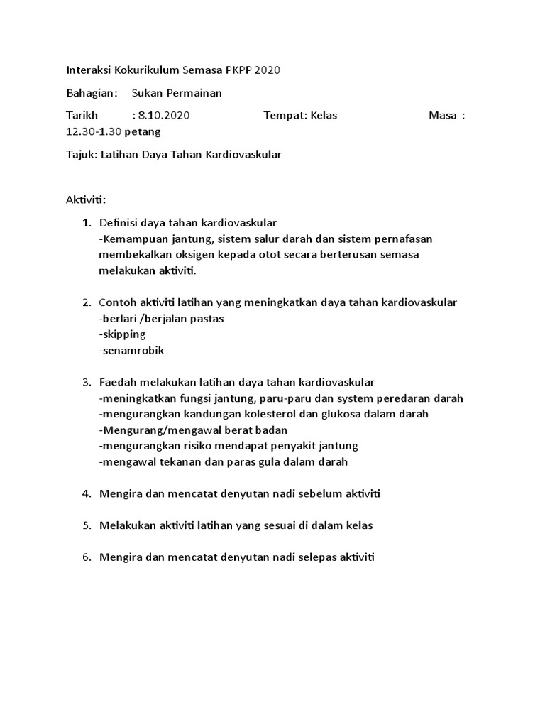 Contoh Aktiviti Daya Tahan Kardiovaskular